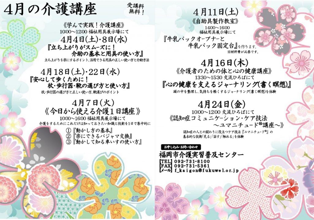3月1日より、4月分の市民向け介護講座の受付を開始いたします。